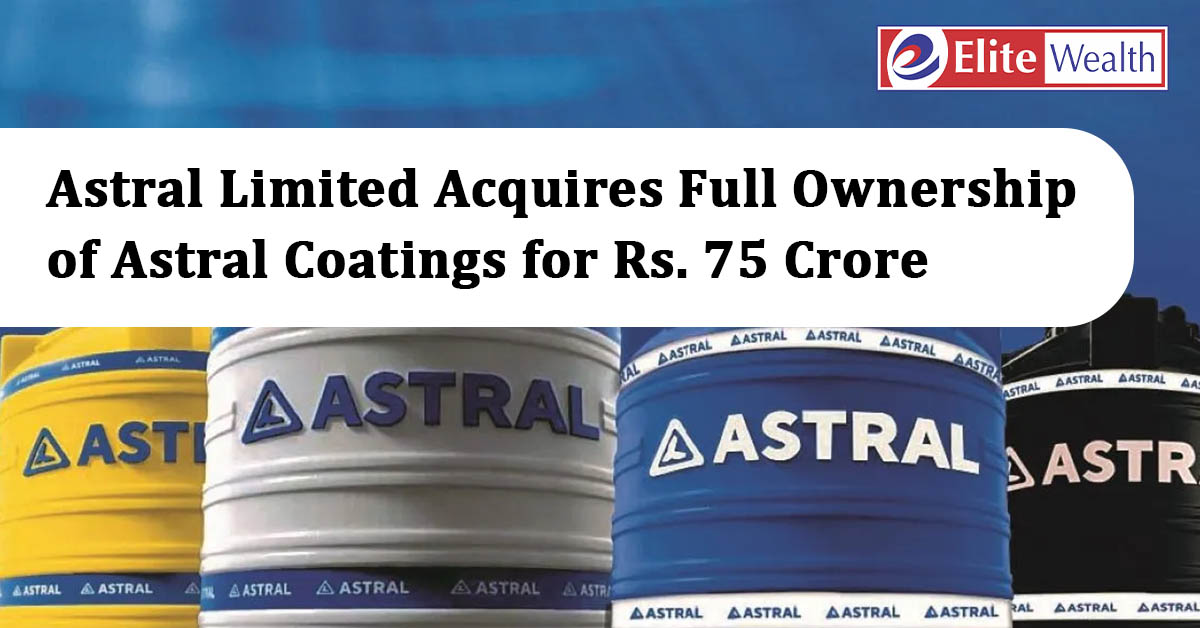 Mumbai, September 11, 2025: In a strategic move aimed at consolidating its presence in the paints and coatings industry, Astral Limited has announced the acquisition of the remaining 20% stake in its subsidiary, Astral Coatings Private Limited, for Rs. 75 crore. With this transaction, Astral Coatings becomes a wholly-owned subsidiary, granting Astral Limited complete control over its coatings business.