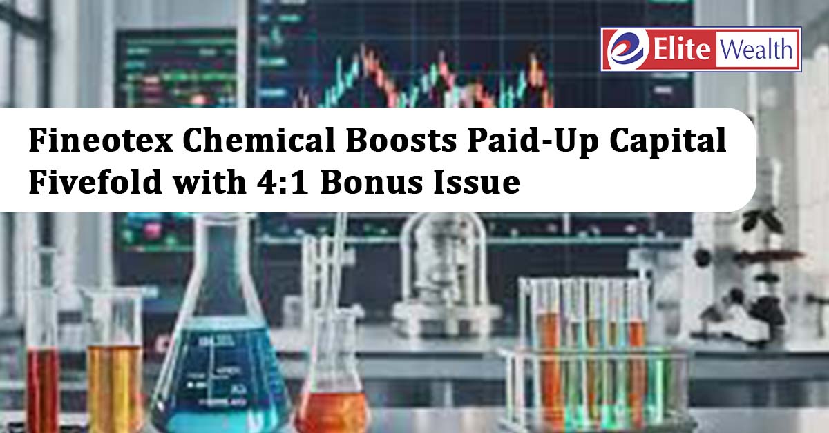 Fineotex Chemical Limited has announced the allotment of 91.66 crore bonus equity shares with a face value of ₹1 each, following a 4:1 bonus ratio. This corporate action has expanded the company’s paid-up share capital from ₹22.92 crore to ₹114.58 crore, marking a fivefold increase.