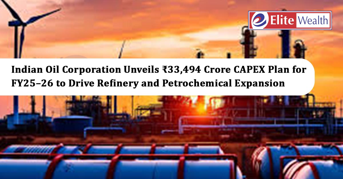 Indian Oil Corporation (IOC) has announced an ambitious ₹33,494 crore CAPEX plan for FY25–26 to support refinery and petrochemical expansion. The company expects new refinery units to reach over 80% utilization by Year 2, while petrochemical projects will scale to full capacity by Year 3 with a targeted IRR of 11%. Annual CAPEX, including JVs, is projected between ₹30,000–₹40,000 crore. IOC also clarified that its analyst meet will be held on October 28, 2025.