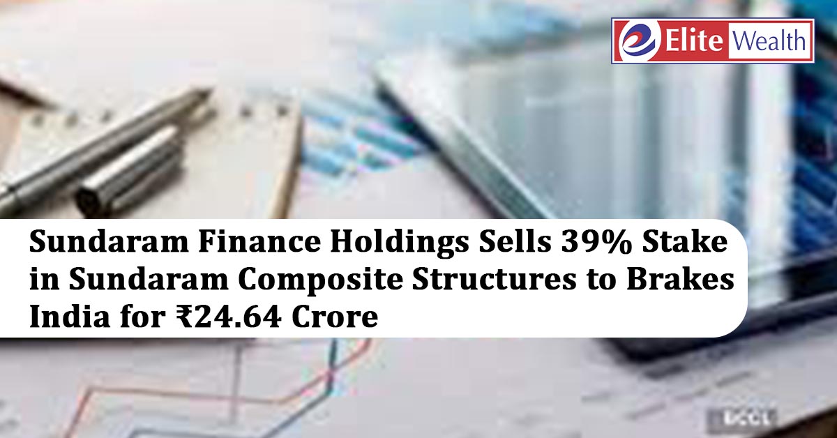 Sundaram Finance Holdings Limited has completed the sale of its entire 39% stake in Sundaram Composite Structures Private Limited to Brakes India Private Limited for ₹24.64 crore through an off-market transaction. The divestment, originally expected by December 2025, was disclosed in a filing dated September 30, 2025.